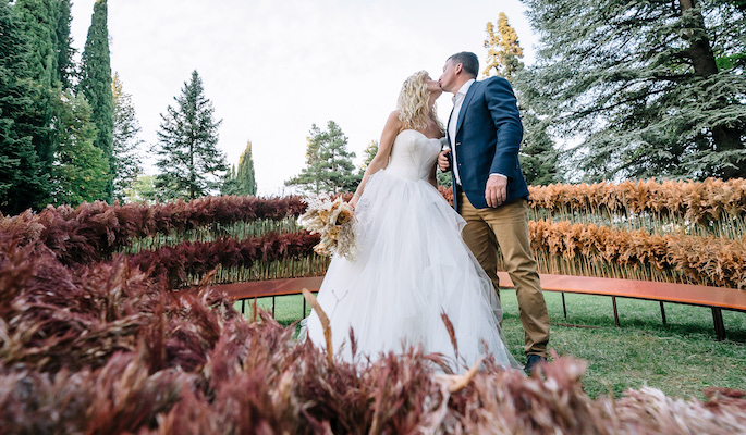 По плану «А» свадебная церемония должна была проходить в горах, откуда открывался невероятный вид на осеннюю природу Грузии. На церемонию гости должны были попадать на больших грузовиках ЗИЛ, в кузове которых традиционно перевозят собранный урожай винограда.