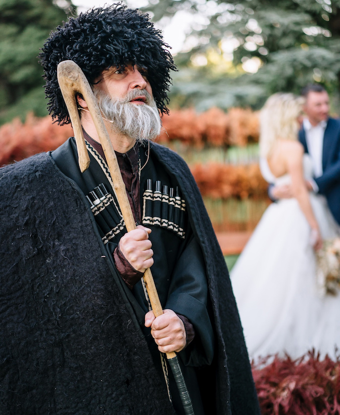 В зоне церемонии пару встречал отшельник и грузинский хор.