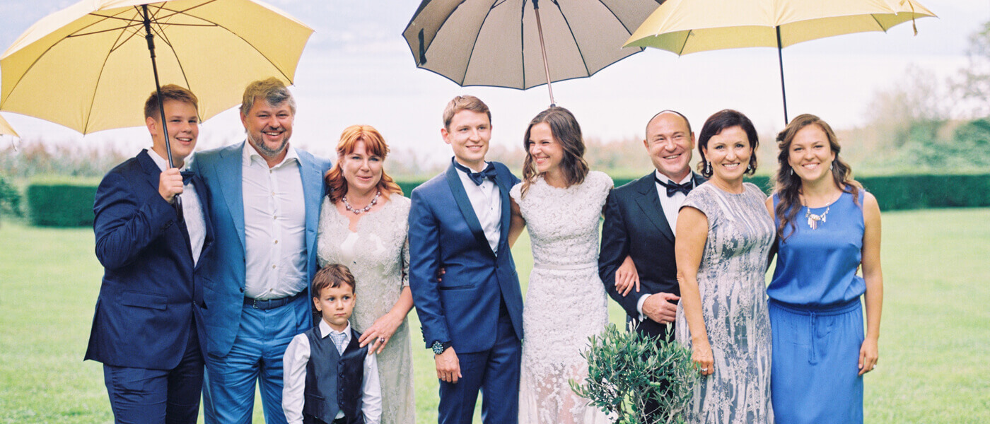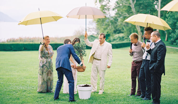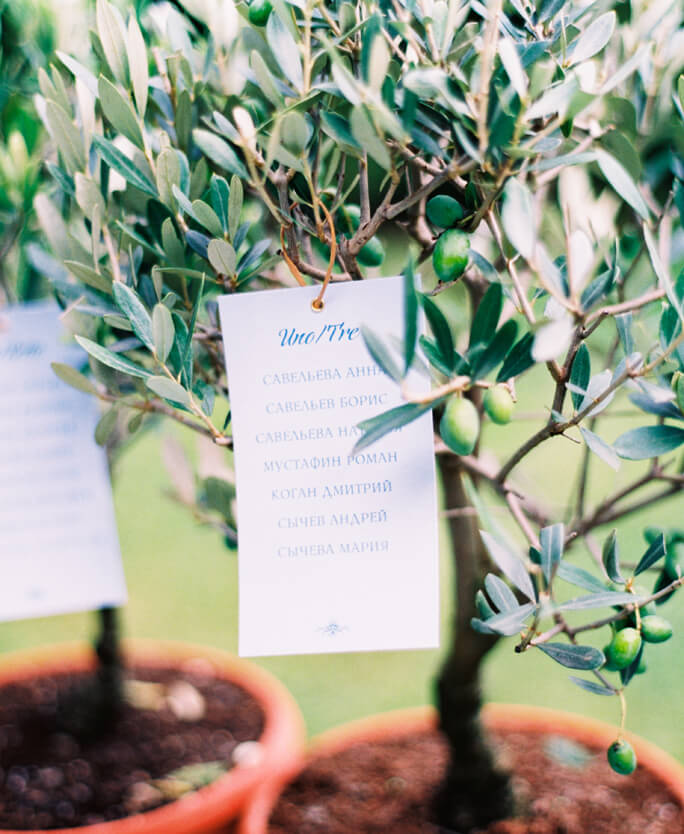 Италия - страна семейных традиций и день свадьбы Даши и Жени мы наполнили новыми традициями, от которых удовольствие получили, как жених с невестой, так и гости. Обменявшись кольцами вместо привычных лепестков роз, молодоженов посыпали итальянскими макаронами, а после церемонии Даша и Женя вместе посадили оливковое дерево.
