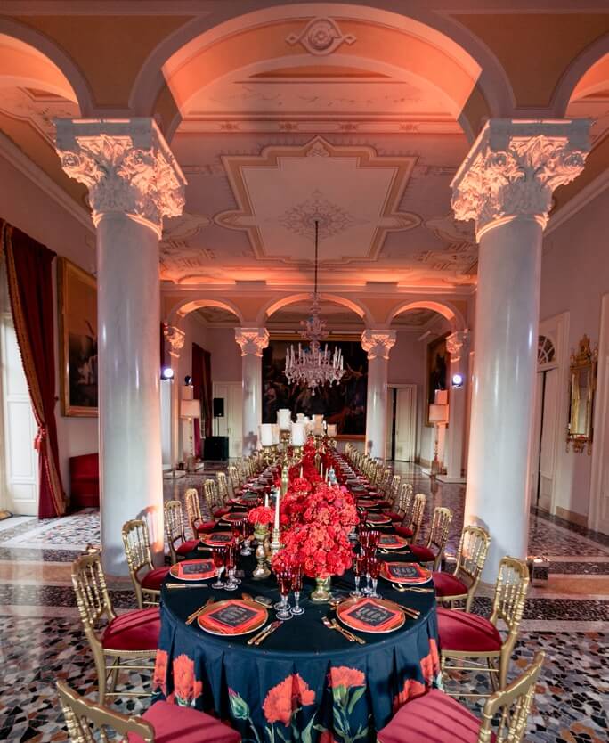 Свадьба Анастасии и Сергея на озере Комо началась с приветственного ужина в стиле Dolce&Gabbana - роскошь, Dolce Vita, итальянская страсть, семейные традиции и идеальный насыщенный красный.