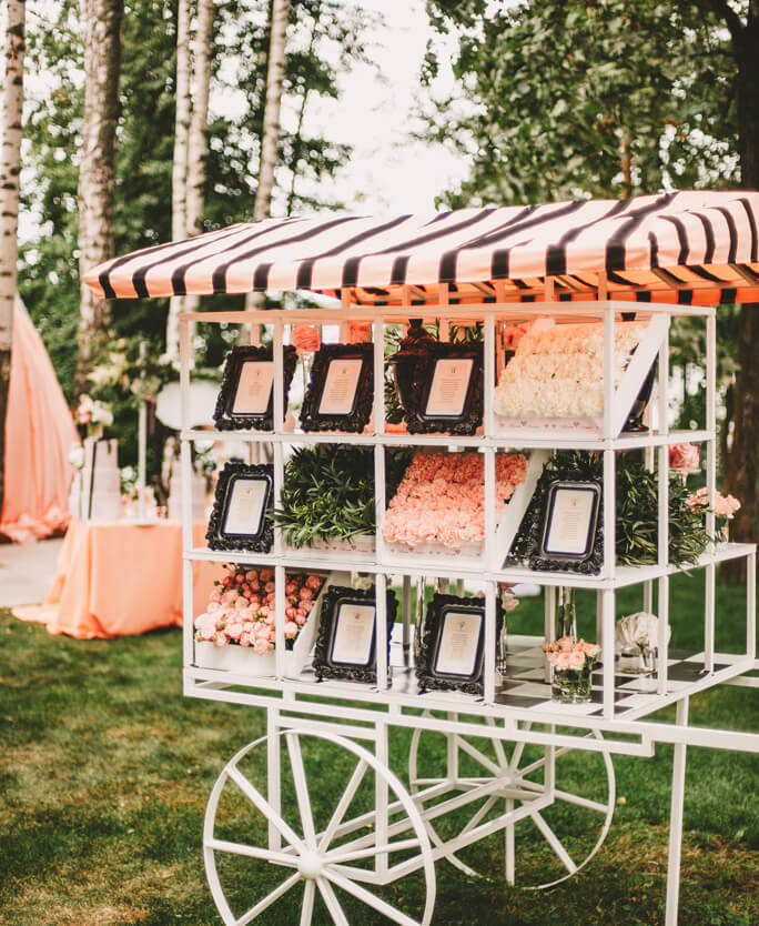 Подготовка к свадьбе была сложной и интересной с технической стороны: мы демонтировали местный шатер и в течение недели построили новый, в несколько раз больше и с нужной нам планировкой. Вход в шатер во время welcome превращался в сцену, на которой выступали музыканты, дети наблюдали за звездами в специальный телескоп, а лаунж-зона для гостей была оформлена в виде шатра, который по стилю в точности повторял дизайн основного.