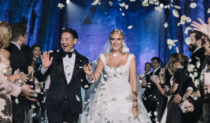 День свадьбы стал настоящей кульминацией - торжественная церемония состоялась в пещере, укрытой скалами от посторонних глаз, на берегу Средиземного моря. Величественные, высеченные природой своды стали идеальной декорацией праздника, а подводная съемка на скалистых стенах эффектно создавала ощущение естественности и красоты этого момента.