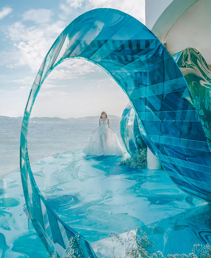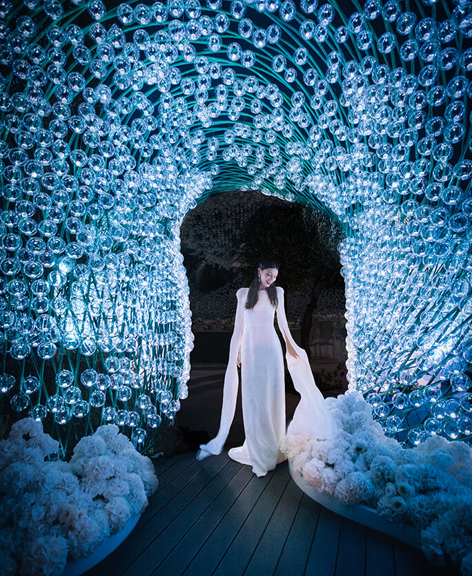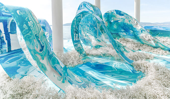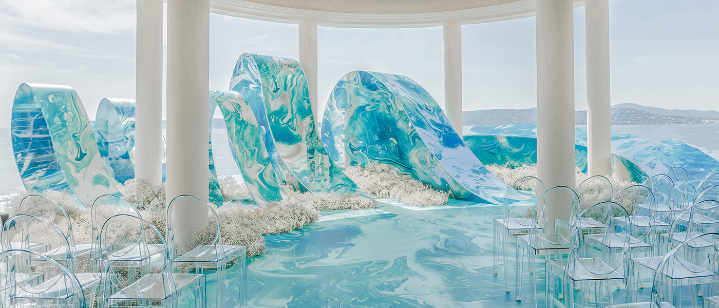 Церемония на фоне морского горизонта, где декорации как большие изумрудные и зеркальные волны поднимались над водой, уже никого не могла оставить равнодушным