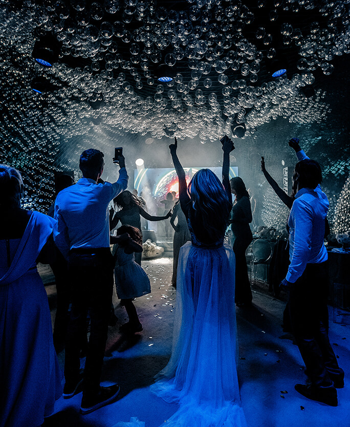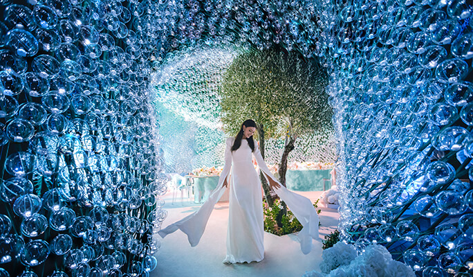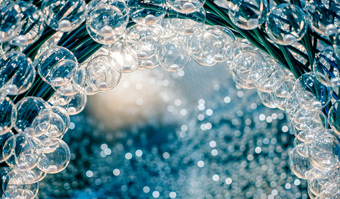 Шатер в форме волн был усеян тысячью маленьких прозрачных шаров, которые напоминали пузыры морской пены - находясь внутри непременно представляешь как тебя накрывает большой волной.