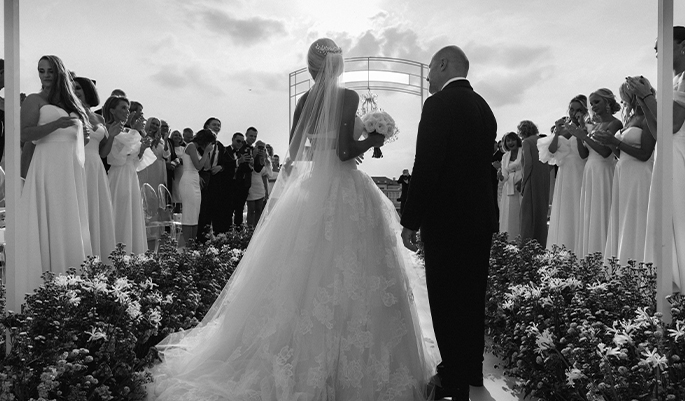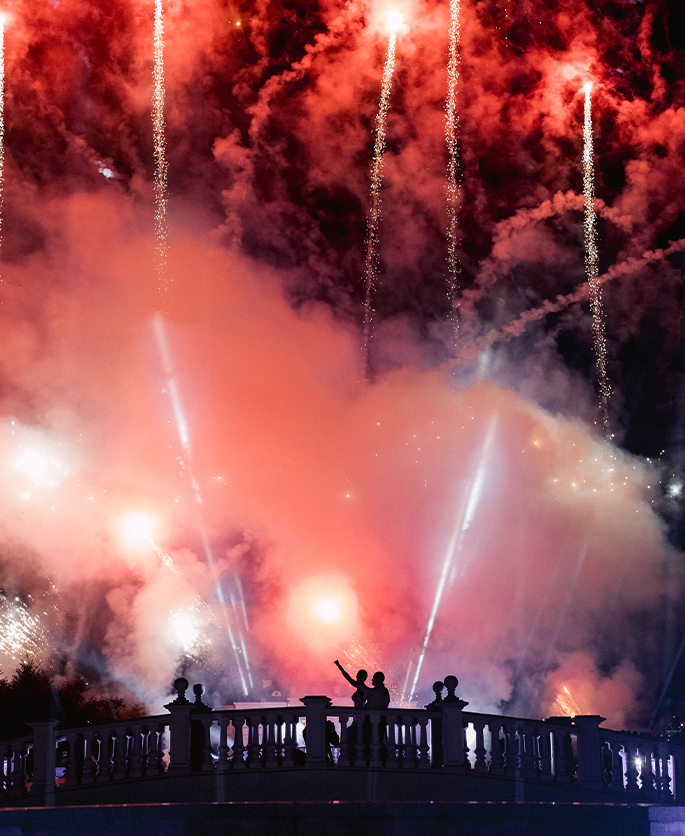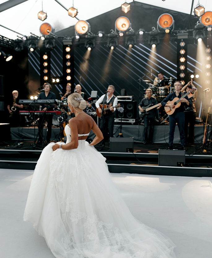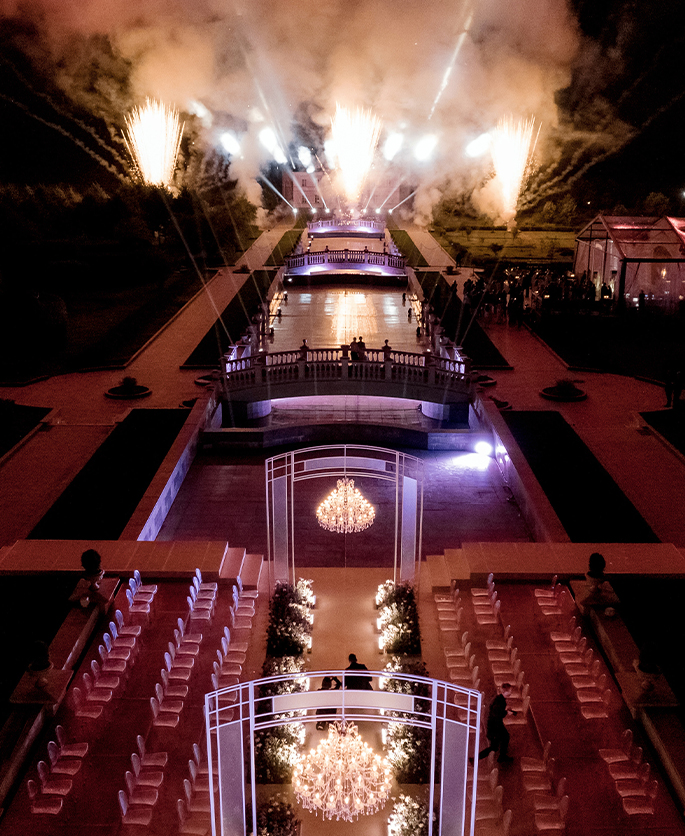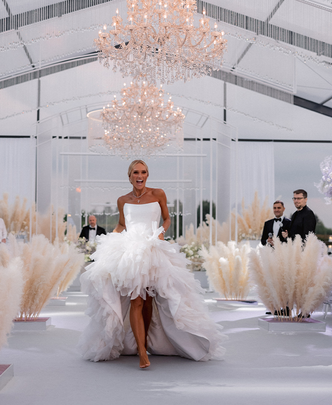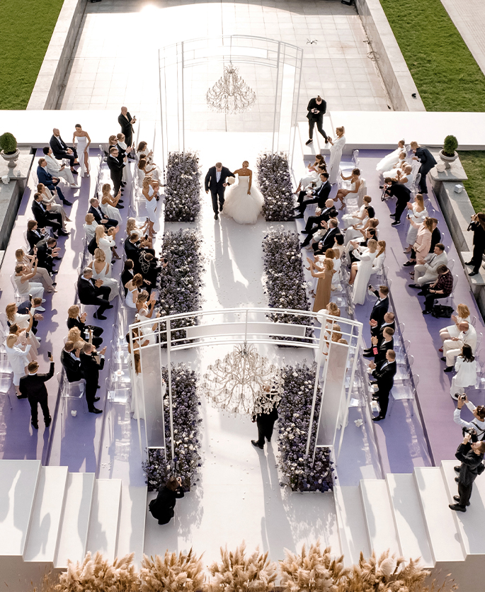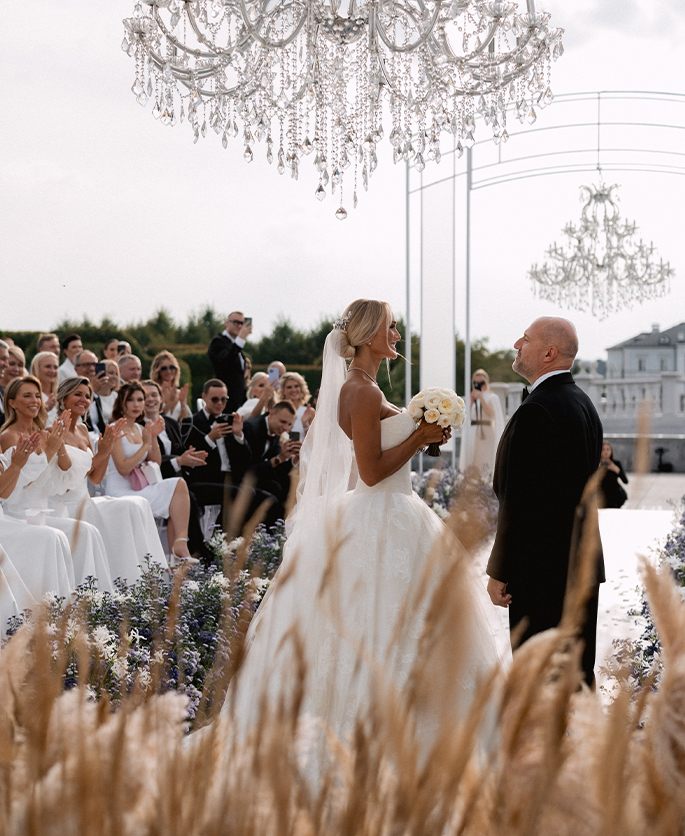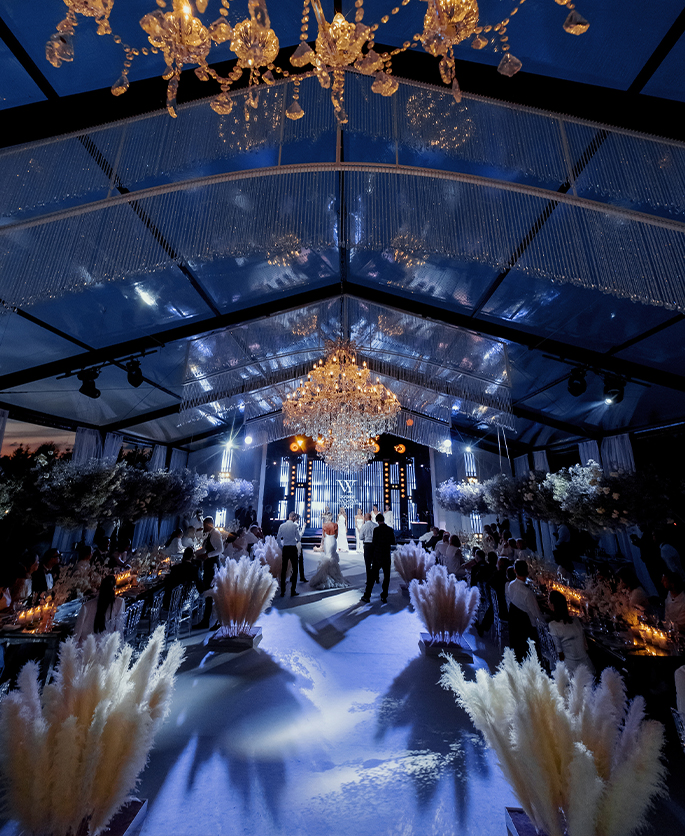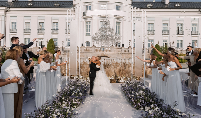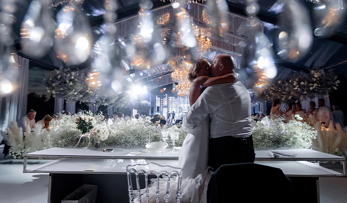 Это событие было действительно ярким! Звездные ведущие Гарик Харламов и Олег Савельев — идеальный дуэт для такой эффектной свадьбы, который с первых минут вовлек гостей в происходящее. В течение всего вечера выступали множество всеми любимых исполнителей – Леонид Агутин, Анжелика Варум, Дима Билан и Ксана. Ярким моментом стал сюрприз от невесты и ее подруг, а красочным финалом — световое шоу с фейерверками.