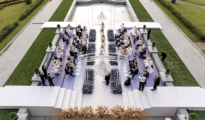 Несмотря на то, что свадьба выглядит легкой и изящной, за созданием подобного мероприятия стоит огромная работа - монтаж длиной почти в неделю и большая профессиональная команда.