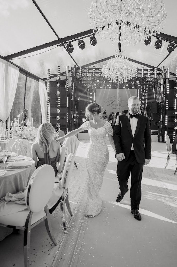На этой свадьбе Эд придумал исполнить мечту Маши и подарить щенка! Специально для этого гостя мы выделилили еще одного координатора, который целый день ухаживал за малышом, кормил по часам, водил на прогулки и чесал пузико, чтобы он не беспокоился.