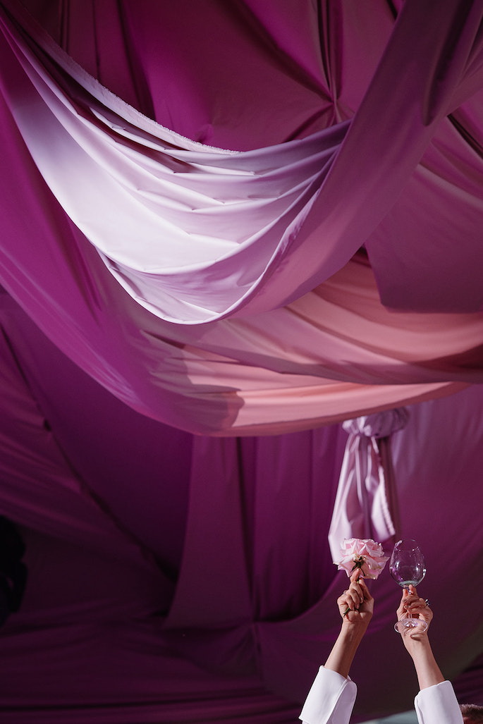 Так, с ее помощью у нас получилось юмористическое шоу про историю знакомства пары, в которое мы вовлекли гостей. А еще Настя и Саша во время подготовки записывали нам голосовые сообщения с историями их отношений, они были особенно трогательные и живые. Мы решили использовать их во время вечернего перфоманса и наложили эти аудио на музыку. Это ощущение, как в кино, когда тебе удается прикоснуться к самым сокровенным чувствам двоих людей с помощью искусства, плакали абсолютно все!