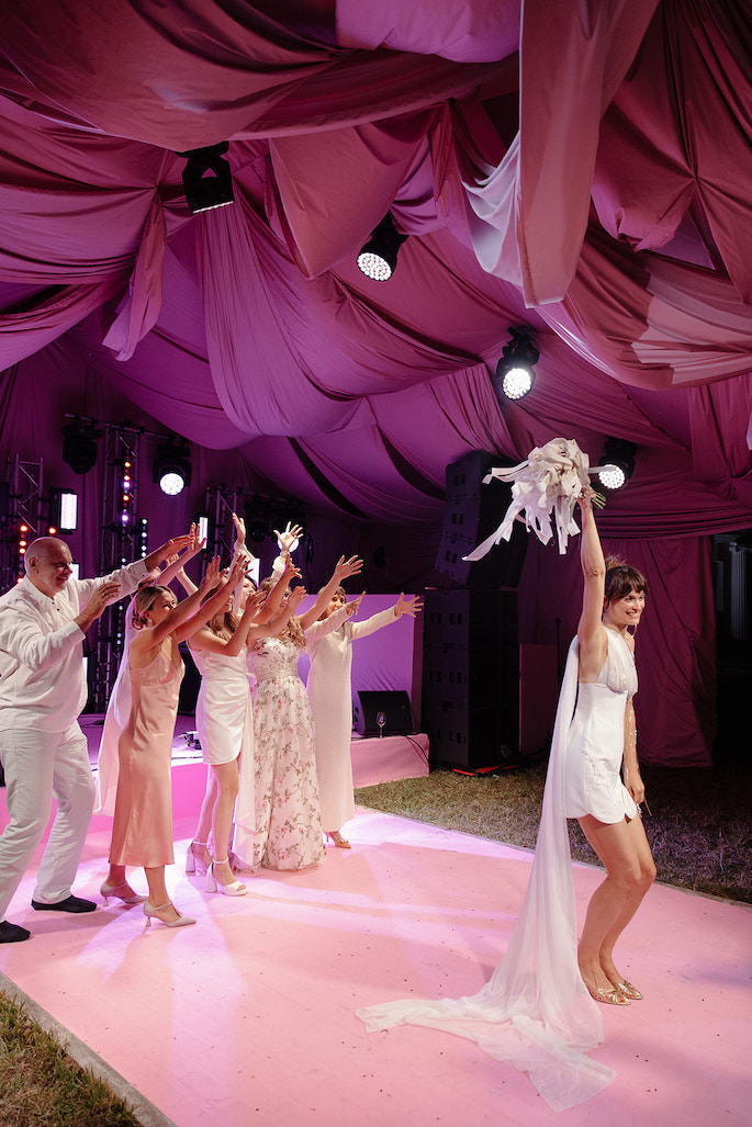 Режиссером перфомансов стала классная Оля Рыжанкова которая по совместительству лучшая подруга невесты. Получилось идеальное комбо, ведь она наблюдала историю пары с самого детства и знала о многих смыслах важных для ребят, которые можно было заложить в постановки.