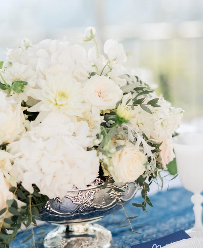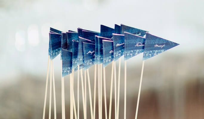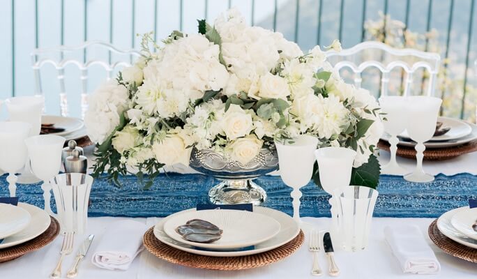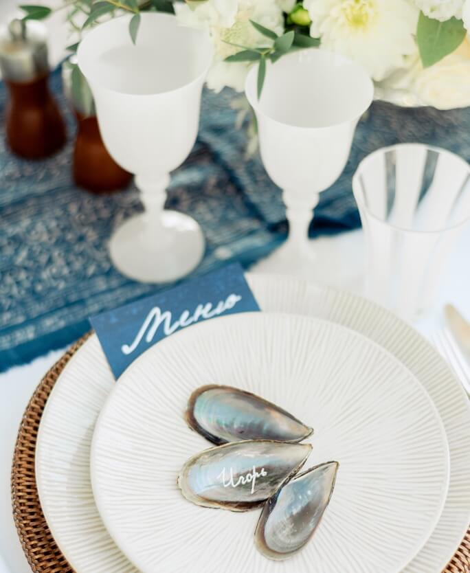 В сервировке использовали оригинальные карточки рассадки — каллиграф писал на мидиях.
