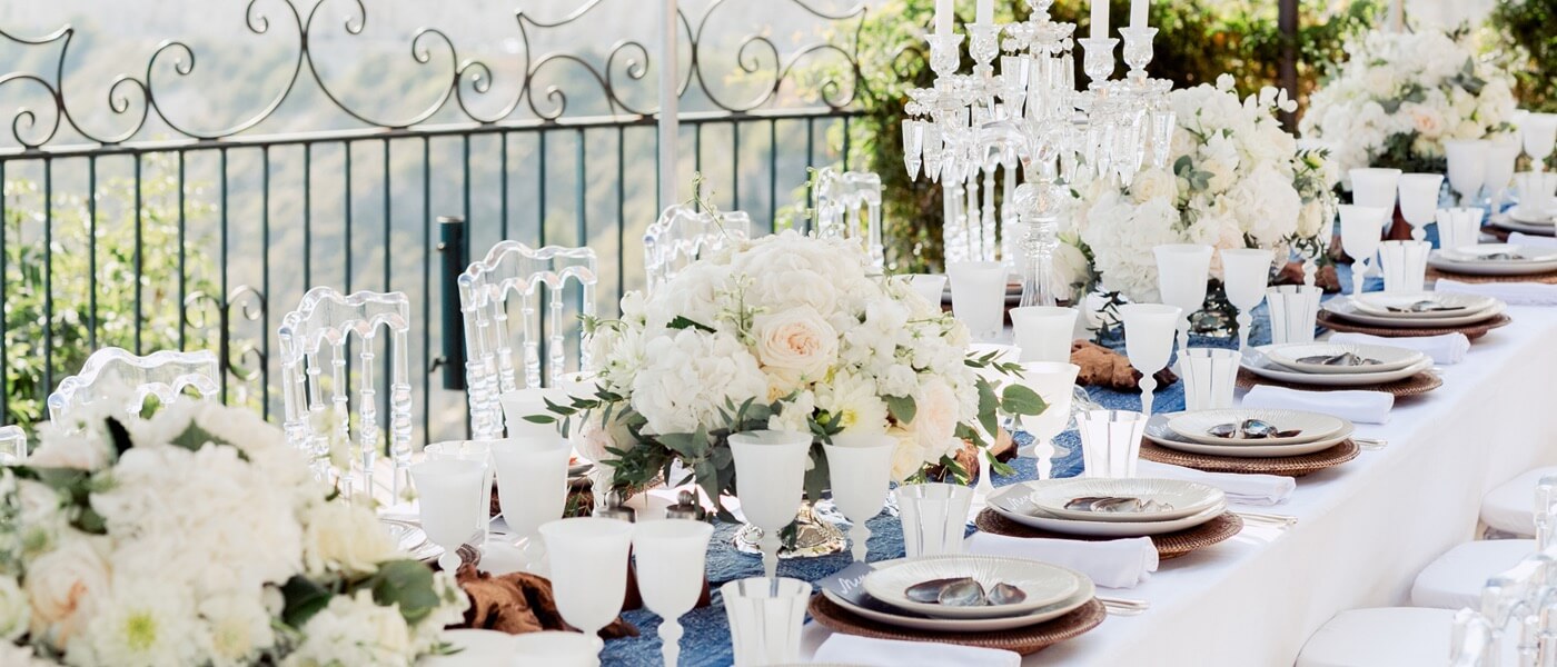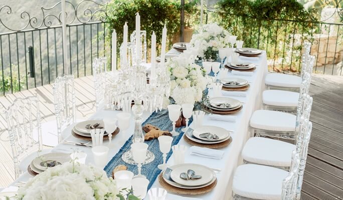 Свадебный семейный ужин организовали на открытой веранде ресторана, с которой открывался вид на Лазурный берег и живописные горные пейзажи.